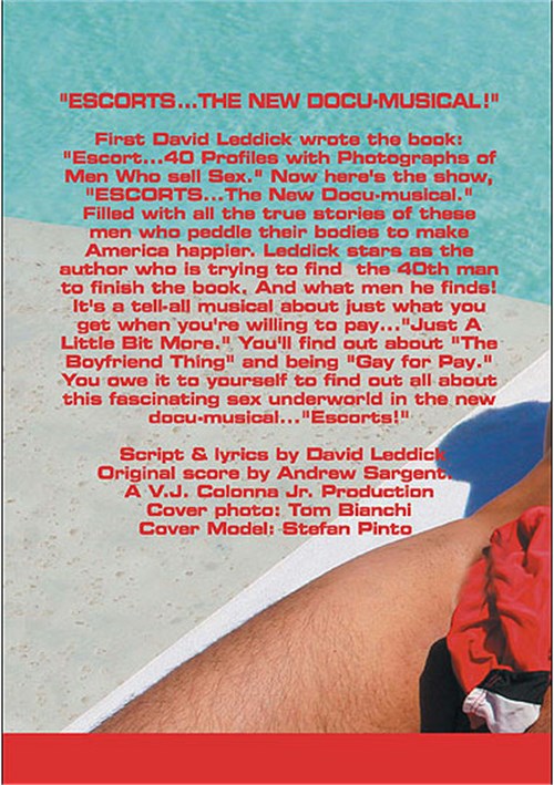 First David Leddick wrote the book Escort: 40 Profiles with Photographs of Men Who Sell Sex. Now here's the show, Escorts. Only David Leddick, the multi-hyphenate gay man-about-town could conceive of such a thing - a musical based on a photo book about hustlers - but that's just what he's done. This charming and sexy theater piece is filled with true stories of these men who peddle their bodies to make America happier. Leddick stars as the 40th man to finish the book, and oh what men he finds. This is a "tell-all" musical about just what you get when you are willing to pay..."Just a Little Bit More." You'll find out about "The Boyfriend Thing" and being "Gay for Pay." You owe it to yourself to find out about this sexual underground via a musical - what could be more fun!